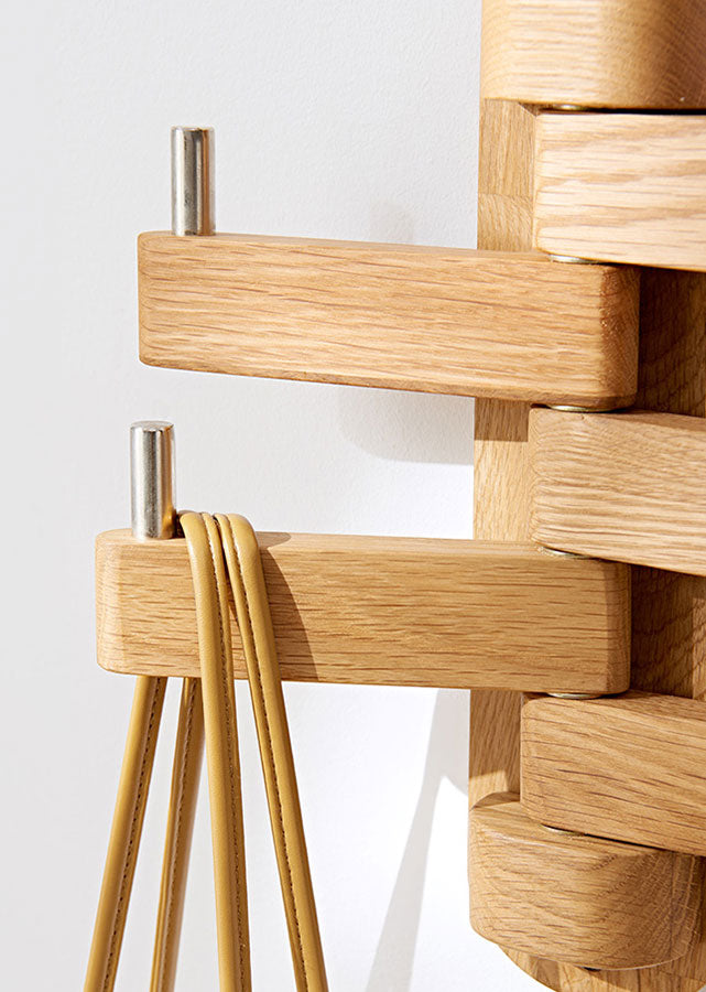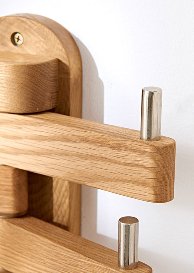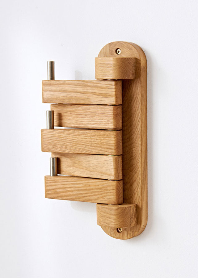 Maximize your wall space with the Abrir wall hook. Made from solid oak, it rotates up to 180° — ideal for hanging bags, coats, or accessories in tight spaces.
