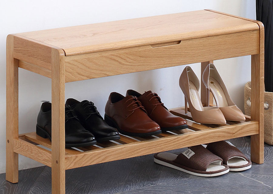 The Aperio Bench offers a clean look with hidden top-lid storage. Use it for shoes, socks, or daily items — great for bedrooms or entryways.