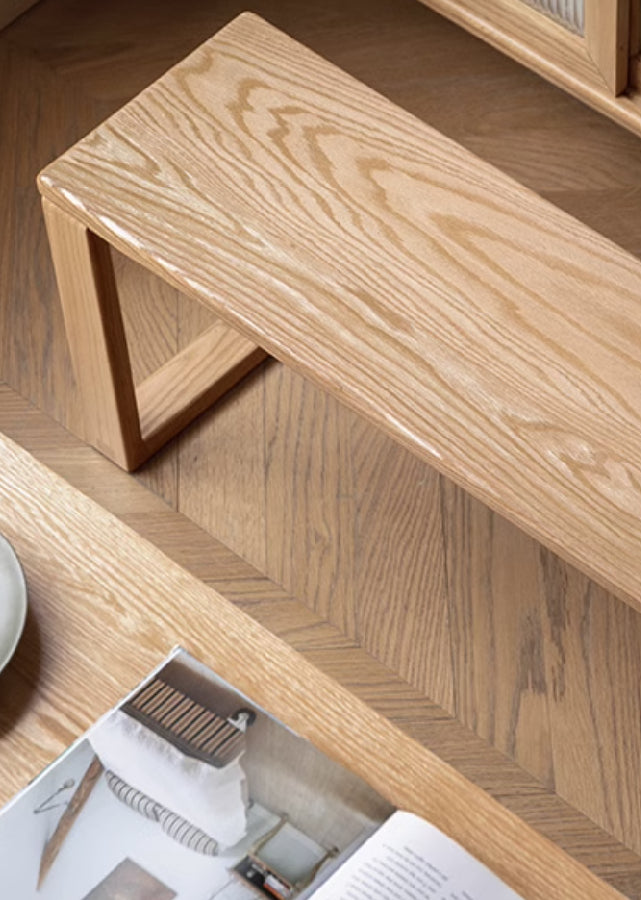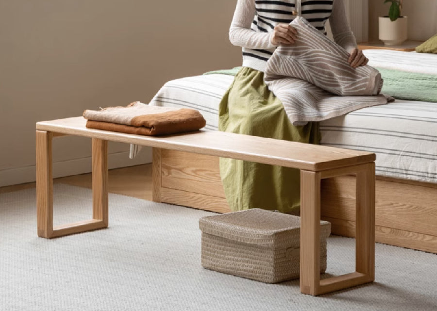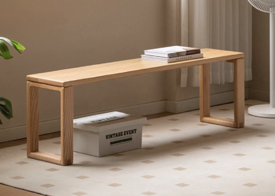 This solid bench features robust, thick legs, making it a perfect match for hefty tables.