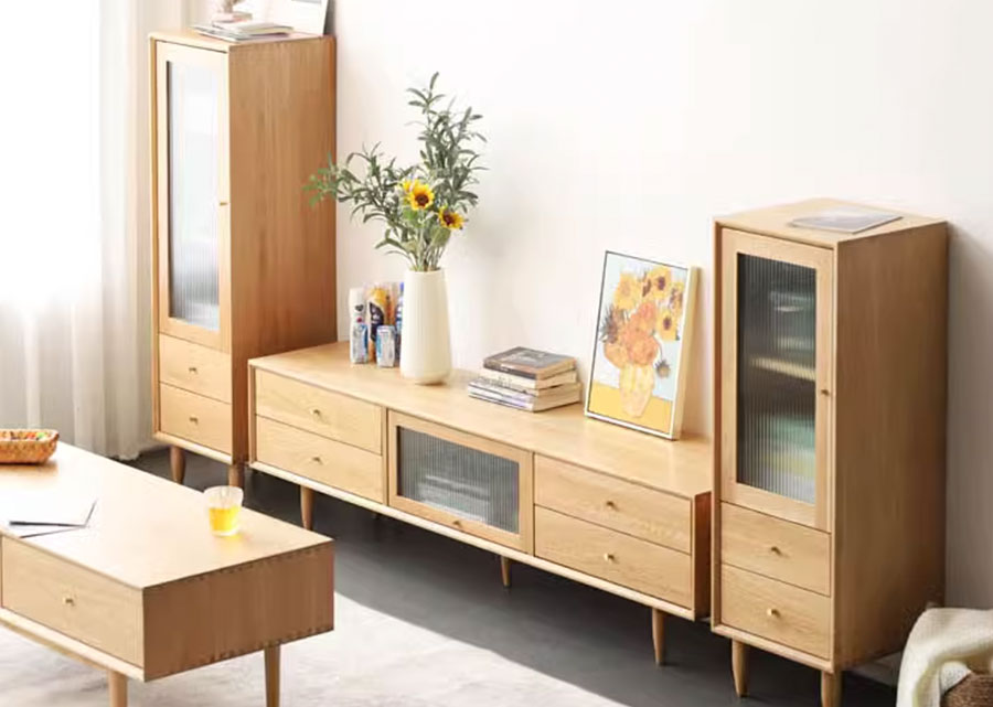 The Alora Tall Cabinet features a timeless design that enhances any living room setup. Now available in solid oak, this popular piece offers both style and durability, making it a great choice for adding natural warmth and practical storage to your home.