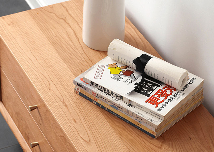 The Elegante series also comprises a coffee table, tall cabinet and desk.