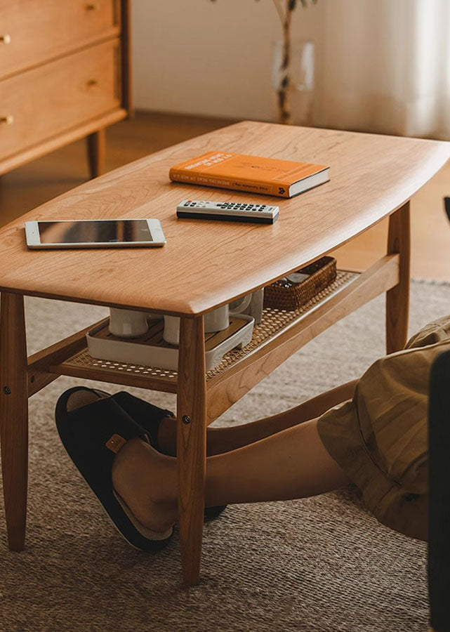 The Fluo Coffee Table brings fluid curves and warm solid wood tones together for a refined yet approachable centerpiece.