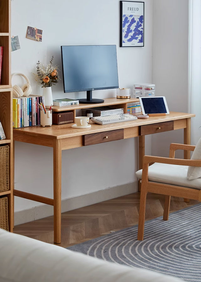 An upgraded version of our best-selling Clair table—now with wider panels and two built-in drawers. Designed for speed, space, and style in any home office or study.