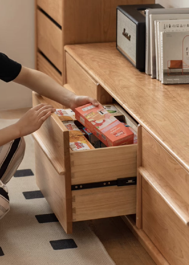 We love the simple but sophisticated design of the Hilo TV console. Available in two material choices of cherry wood and dark walnut, this piece will add an effortless elegance to your living room.