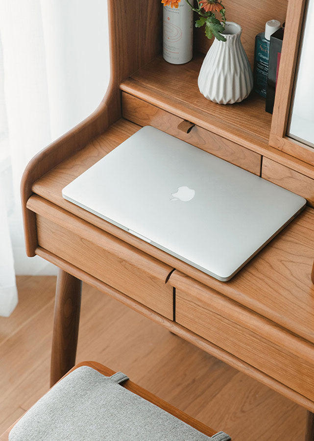 The Orkos Dresser is a functional, beautiful bedroom piece offered in two sizes. Its detachable, reversible mirror and natural wood finish bring flexibility and quiet charm to any setup.