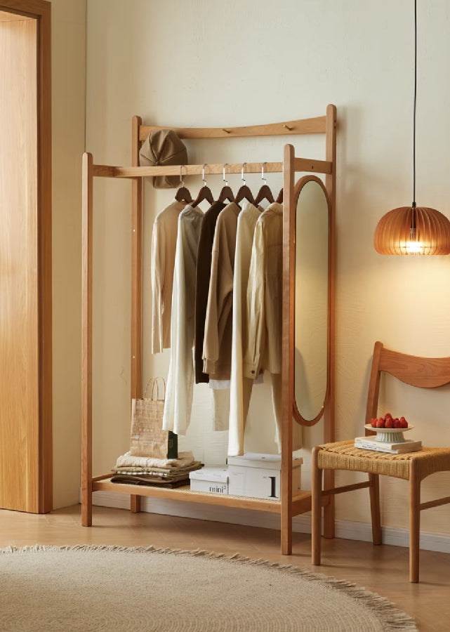 A double-layer clothes rack that's relatively compact. You could opt to have the mirror or not.