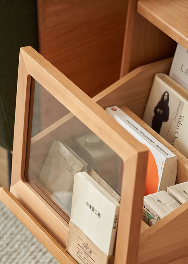 A compact and classic nightstand in solid cherry wood, available in two sizes to fit any space.