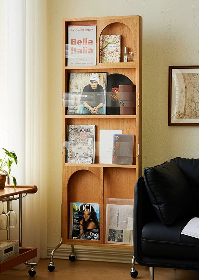 Here's another clever idea for compact homes -- save space by making your full-length mirror do more! Spin the mirror around when it is not in use to reveal a beautifully crafted display stand for books, magazines and small ornaments.
